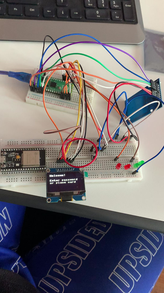 The access control system used in this case uses RFID and Pin identification in order to grant access. RFID, or Radio-Frequency Identification, operates through a system comprising RFID tags and reader devices. These tags, equipped with a microchip and antenna, come in various forms and hold unique identification data. When a reader device emits radio waves via its antenna, RFID tags within its range are powered up, activating and transmitting their stored information back to the reader. This communication allows for data retrieval and processing, enabling tasks such as verifying identity or triggering actions based on the received data. This project makes use of different modules at the same time in order to work